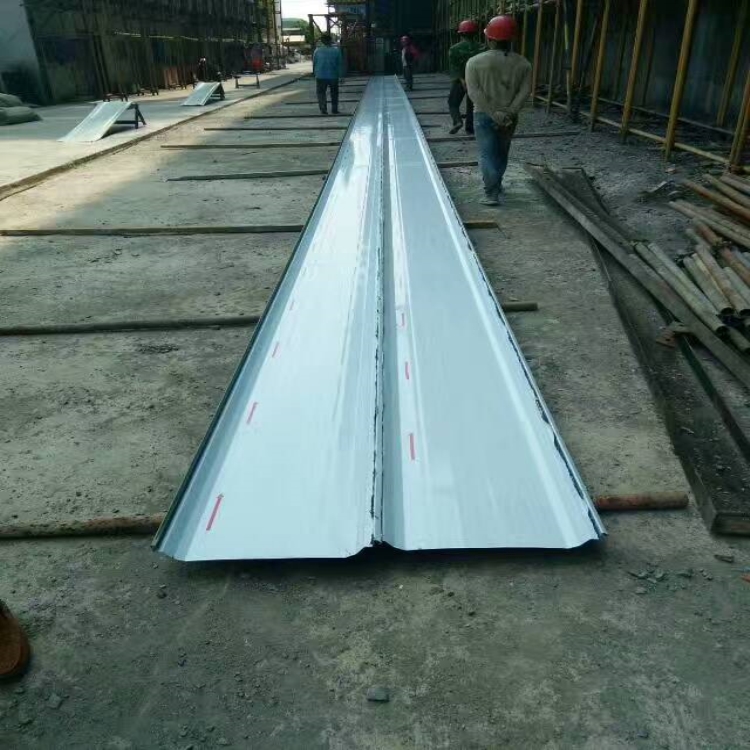YX50-410-820彩鋼瓦是在YX75-380-760屋面暗扣板基礎(chǔ)上研發(fā)的一種利用率比較高的屋面暗扣板,也屬于隱藏式屋面板,主要是靠一個(gè)中間支架和邊支來(lái)固定在檁條上面,然后YX50-410-820彩鋼瓦,HV50-410-820彩鋼瓦直接扣合在支架上面,然后母口扣在公扣上面,經(jīng)過(guò)咬邊機(jī)嚴(yán)密的咬合,達(dá)到防水,防風(fēng)作用。